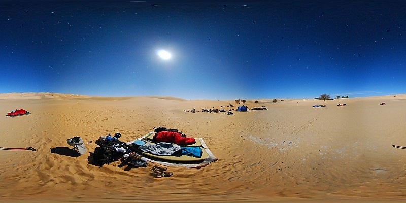 Bild als 360-Grad-Kugel-Panorama um Mitternacht bei Vollmondlicht mit Langzeitbelichtung