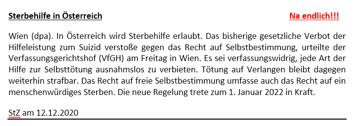 Wie eine Gesellschaft mit ihren Sterbenden umgeht, sagt viel über ihre Werte aus. Derzeit scheitern wir – nicht an mangelndem Wissen, sondern an mangelnder Priorität. Wir wissen, was ein gutes Sterben ermöglicht: Schmerzfreiheit, Vertrautheit, Würde, Begleitung, das Recht, Entscheidungen treffen zu dürfen. Und wir wissen, was es verhindert: Überlastung, Ökonomisierung, Verdrängung. Die Debatten über Sterbehilfe in Deutschland und die Berichte aus dem Klinikalltag zeigen: Es braucht sowohl rechtliche Klarheit als auch kulturellen Wandel. Sterben muss wieder Teil des Lebens werden – in öffentlichen Gesprächen, in der Ausbildung von Pflegenden und Ärzten, in der Planung von Versorgungsstrukturen, in Familien. Diese Seite möchte ein Beitrag zu dieser Auseinandersetzung sein: sachlich, offen, ohne Angst. Denn wer über den Tod sprechen kann, lebt bewusster.PRESSE